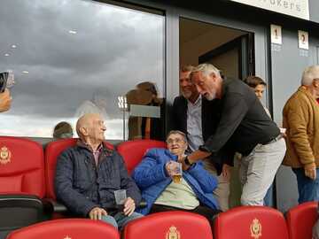 Een verrassingsbezoek van clublegendes Piet den Boer en Geert Deferm, die iedereen persoonlijk begroetten en samen op de foto gingen.